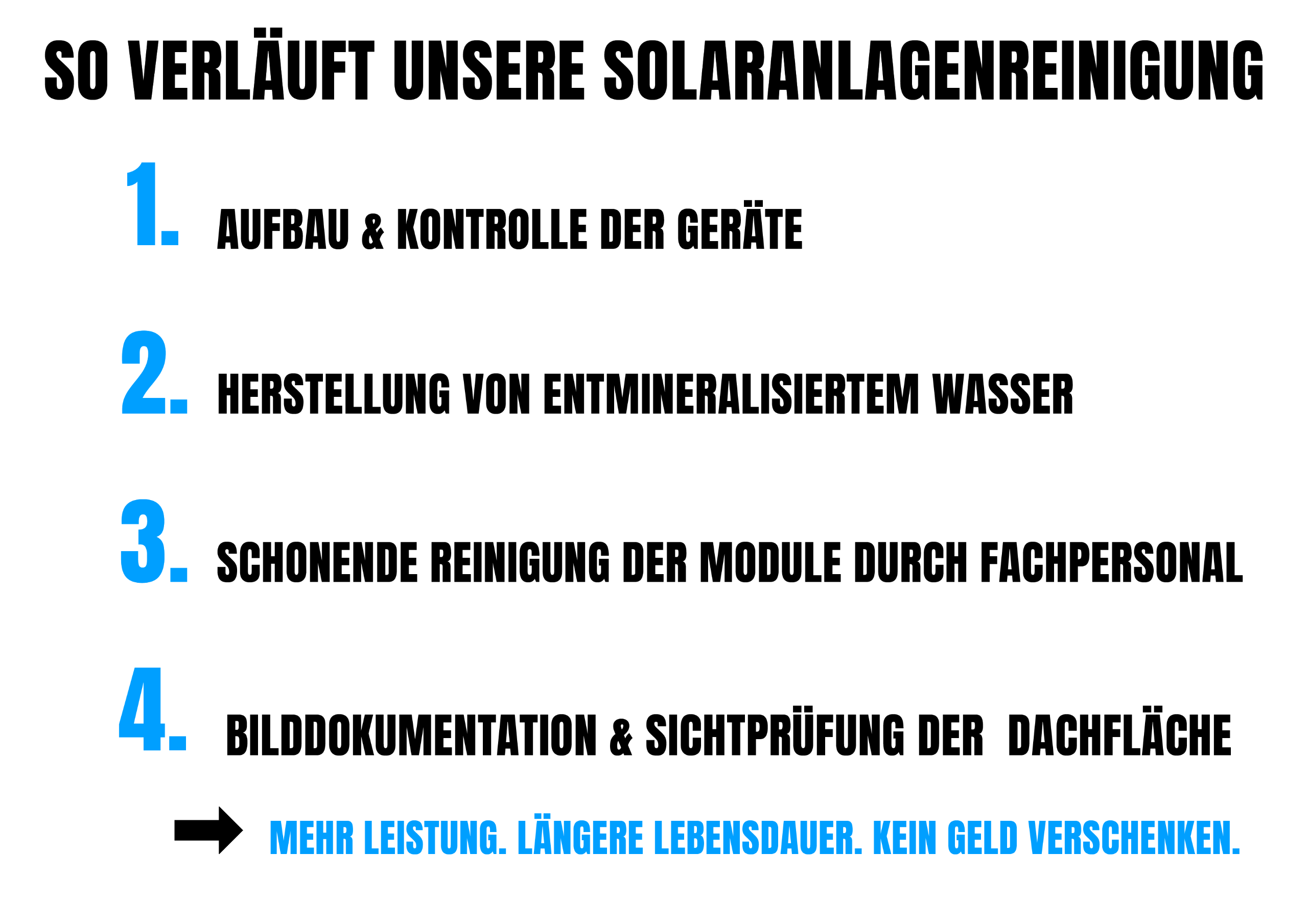Dank der hohen Schmutzaufnahme des Reinwassers erzielen wir ein sichtbares Ergebnis ohne aggressive Zusätze – besonders geeignet für empfindliche Moduloberflächen.